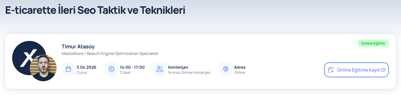 Eğitimin Amacı: Bu eğitimde katılımcılarla beraber e-ticaret siteleri adım adım kurulacak ve satışa hazırlanacaktır. Sizlerde sitemi kurmak istiyorum, hemen satış almak istiyorum diyorsanız eğitime katılım sağlayabilirsiniz. Eğitim İçeriği: Admin Paneli Tanıtımı Tasarım Ayarları Ürün Yönetimi Kargo Yönetimi Ödeme Yönetimi Kampanya Yönetimi